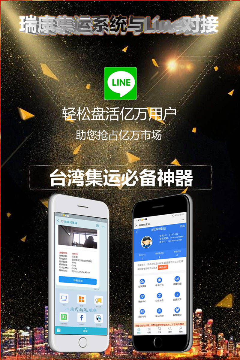 瑞康集運(yùn)系統(tǒng)全面對(duì)接Line。繼瑞康推出微信公眾號(hào)版集運(yùn)系統(tǒng)會(huì)員中心后,又全面推廣與臺(tái)灣社交工具line的對(duì)接。